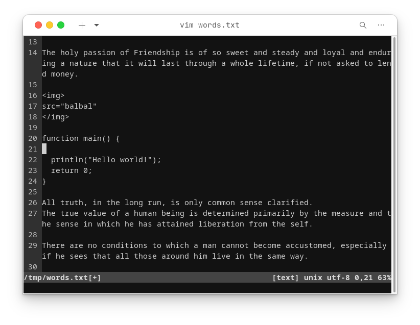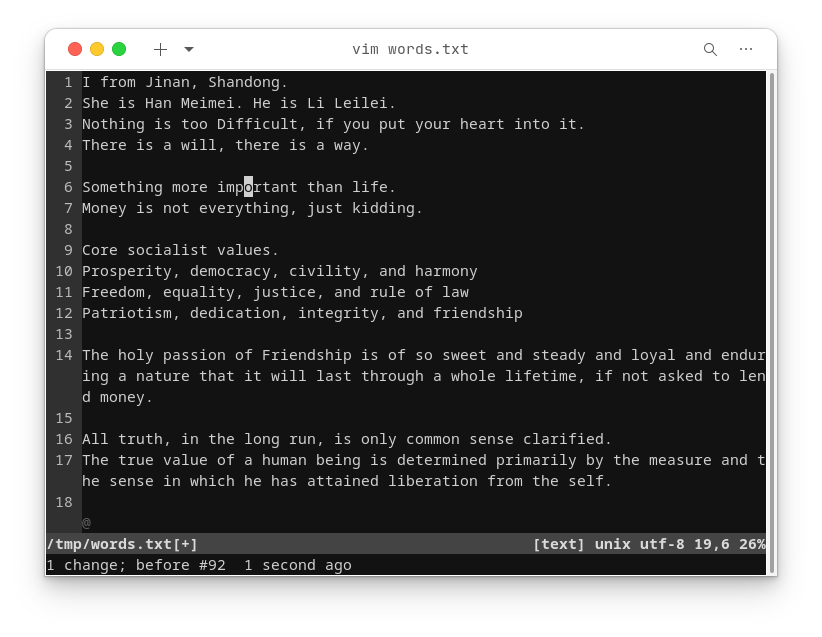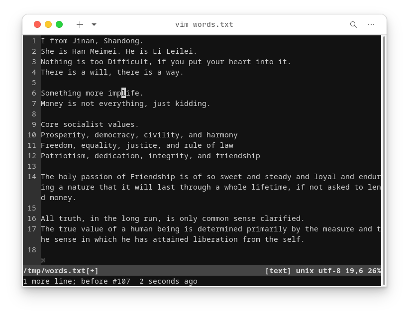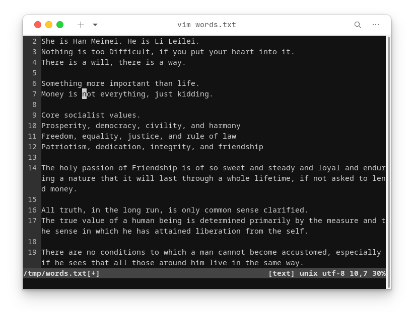 现在打开一个文件,像我一样通过h、j、k、l随便选取一个位置。