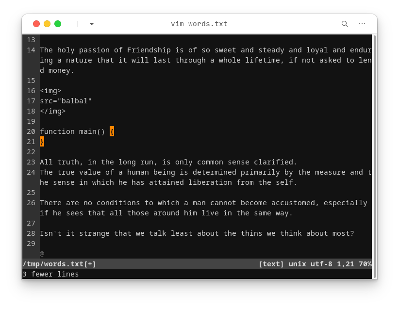 删除之后,我们发现 more 和 than 之间的空格有点大,因为 important 被删,空格变成了两个。如果我们想要把空格也删掉,可以在删除 important 的时候使用 delete around word(也就是 daw)。如下: