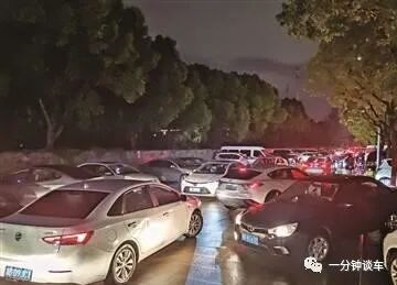 10月27日晚7点半,记者来到高桥镇中学,只见路口及草坪上停满了车,私家车、电动自行车的鸣笛声此起彼伏;只要有一辆私家车“倒车入库”或者驶出,车流很快就会因为拥堵陷入停滞。