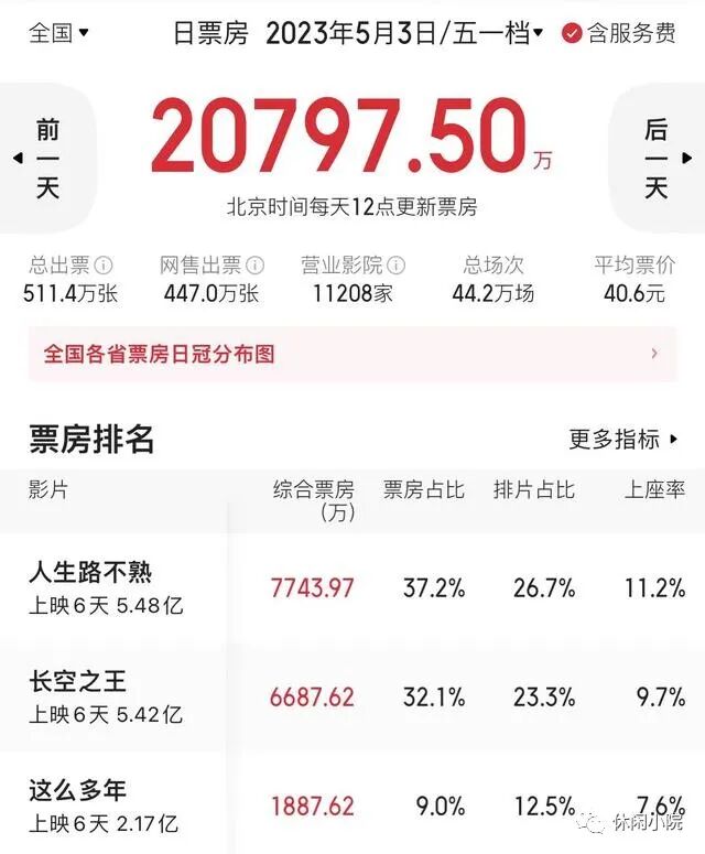 喜剧片《人生路不熟》上映6天拿下5.48亿的总票房成绩,斩获今年的五一档票房冠军!这应该算是黑马逆袭夺冠了,在原本的预售环节,《人生路不熟》的预售票房也仅仅只能排第三。