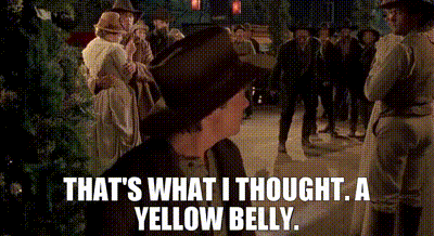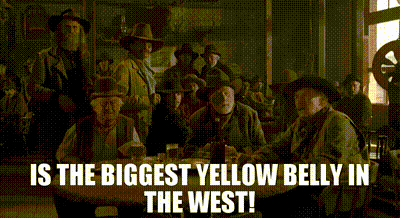 所以,yellow-belly就在说某人是胆小鬼,懦夫。