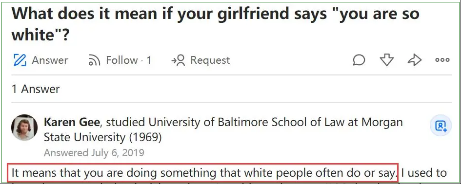 即:这意味着你在做一些白人经常做或经常说的事情。