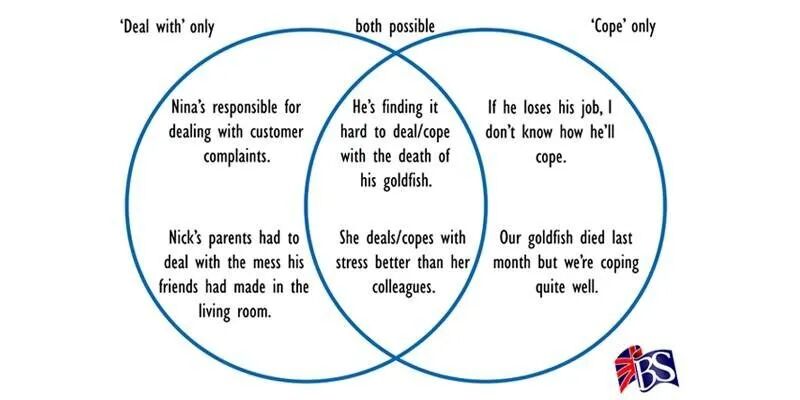 在语法上的一个重要区别是deal with总是带宾语:我们必须说deal with某事,但我们可以不带宾语使用cope。