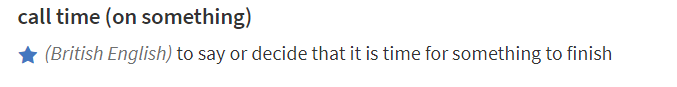 宣布暂停才是 call time 的正确含义,他们想暂停计划就是They wants to call time on this project.