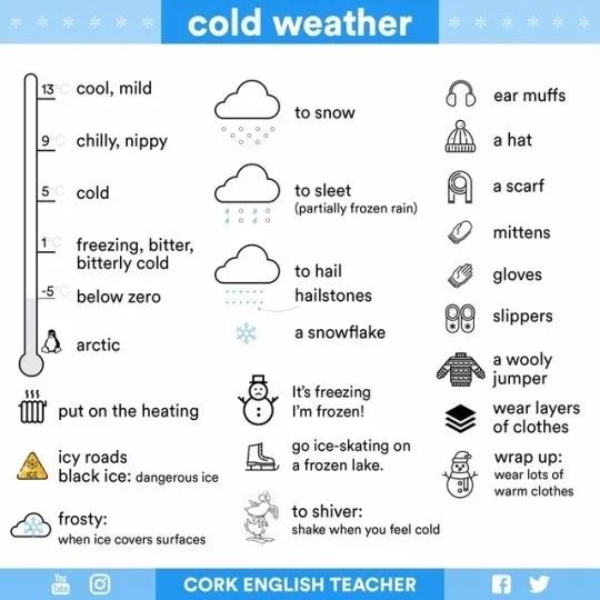 最近冷空气席卷全国,这些词在讨论天气的时候都可以用到: