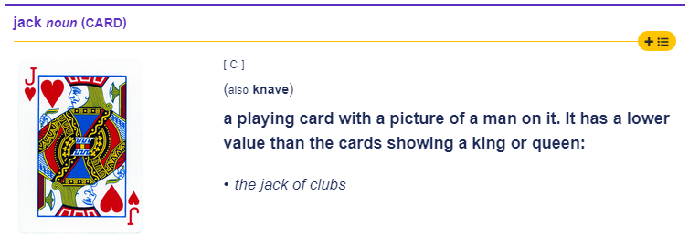 “Jack”这个单词,在英文中是非常普通的一个男子名,类似于中国的“张三、李四”。因为 一个国家里只有一个国王和王后,但是保卫国王和王后的侍从却会有千千万万,所以,就给扑克牌里的“J”们起了一个非常笼统的男子名。