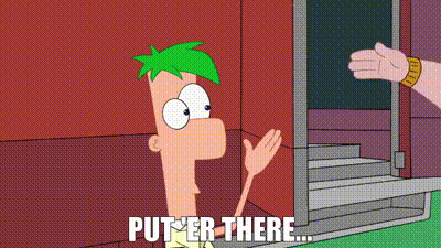当你请求某人与你握手时你就会说“Put it there!”,因为你赞同他们的观点或想祝贺他们。