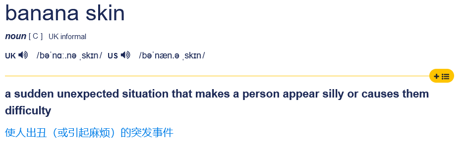 “香蕉皮”的表达可以用banana skin。