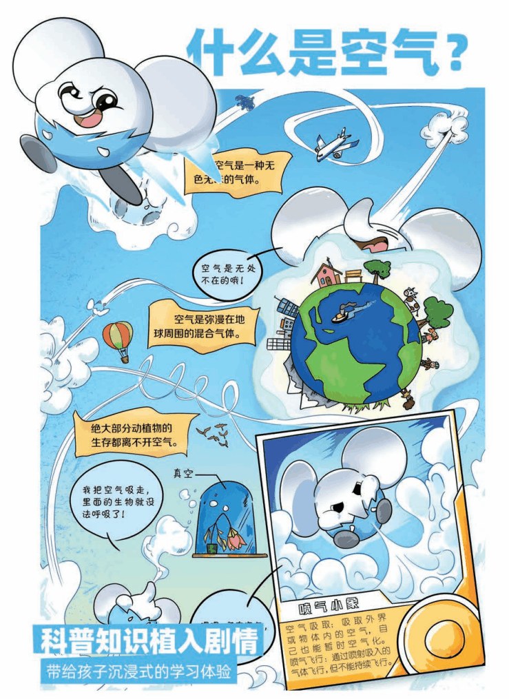 小朋友习以为常的空气、水,也通过图文并茂的介绍,引导孩子用科学的思维,看待身边的常见事物。