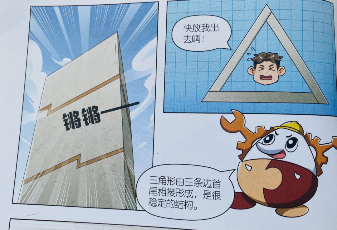 比如,通过主人公被困,让孩子认识到数学中的——三角形稳定结构。