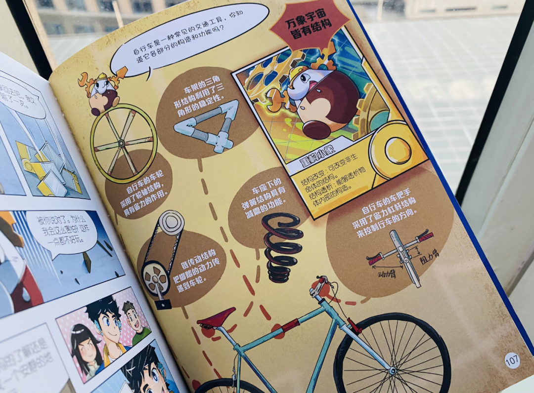 那么它就会通过让孩子思考:自行车的构造和功能有哪些?来温故从漫画中学到的知识点。