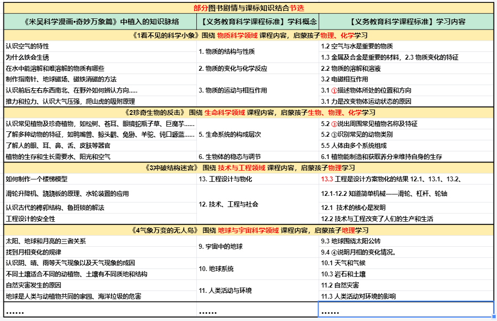 把《义务教育科学课程标准》要求掌握的学科概念,植入到孩子们喜欢的冒险故事中。