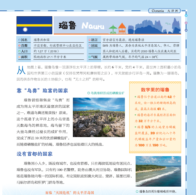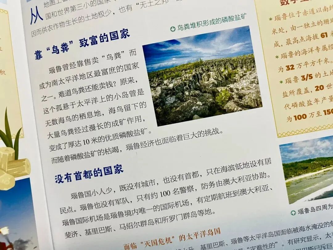 像“瑙鲁”,市面上几乎所有的童书都没写过这个国家,但是这套书里有。