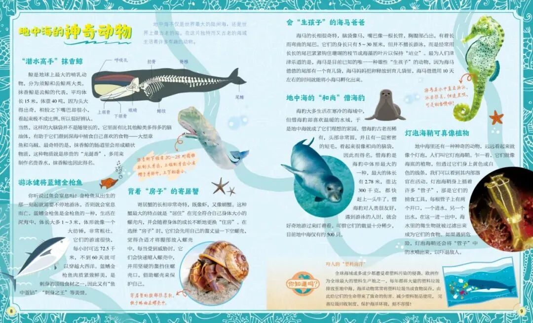 比如《欧洲3》这一本中,讲了很多地中海周围的国家,所以这一本还介绍了几种生活在地中海的有趣动物。