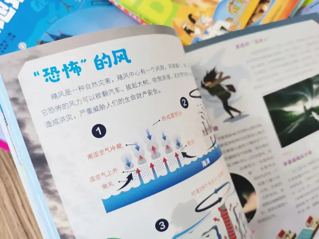 比如介绍美国时,就加入了该国常见自然现象——飓风的原理介绍,它形成的过程就用插图展示了出来。
