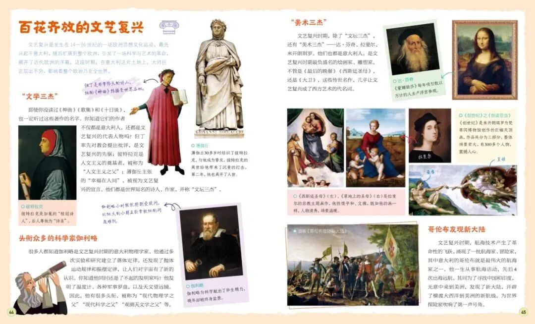 还有一些文化专题,比如讲到意大利,必然会讲到文艺复兴,用一个文艺复兴的专题页进行讲解。