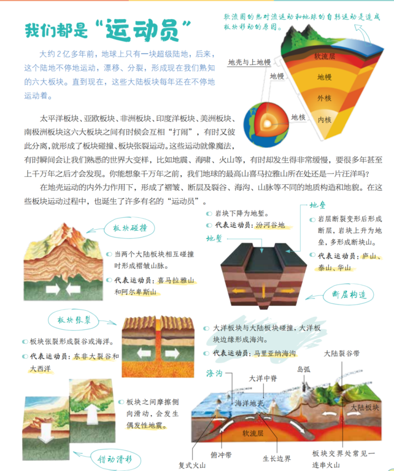 “运动员”这个词,真的把板块运动讲的精准又充满童趣。