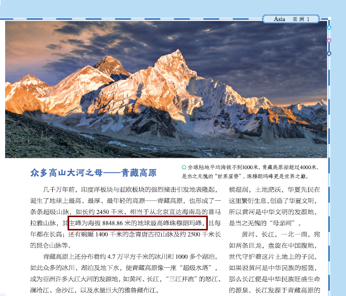 例如2020年12月8日,我国和尼泊尔共同宣布珠峰最新高程——8848.86米。超越了2005年精确测定和公布的8844.43,书中就做了同步更新。
