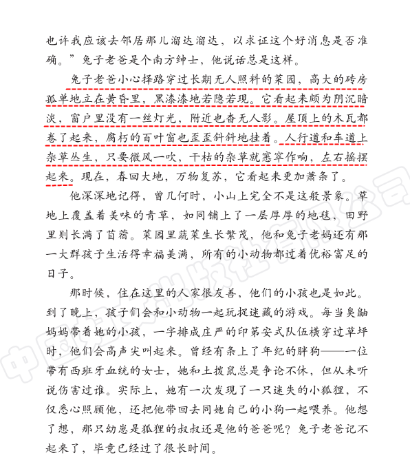 这段画面感超强的写景描写,堪称作文范本。荒芜的菜园子、冷清的房屋仿佛已经在眼前。