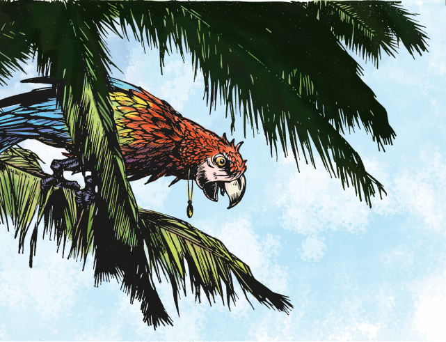 作为回报,鹦鹉们则会从高高的树顶摘下熟透的水果和坚果,并且把自己掉落的羽毛送给他们。总之,那简直就是神仙般的日子。