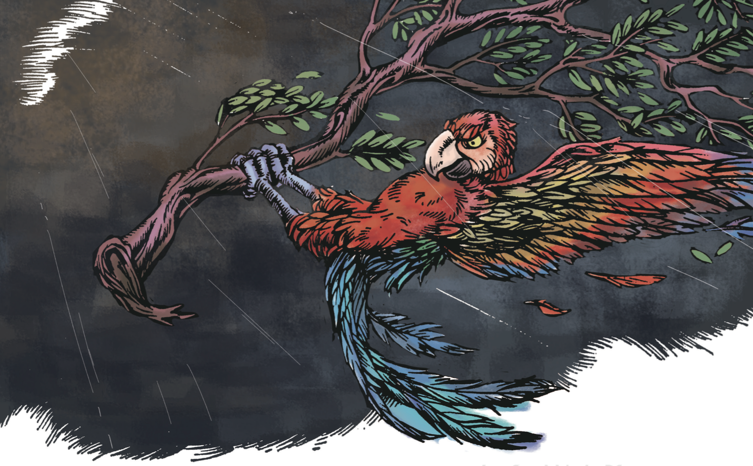 等到奥雷里醒来时,大雨如注,江河变色,它栖息的树枝也被狂风刮断,它被淹没在无尽的黑暗中……
