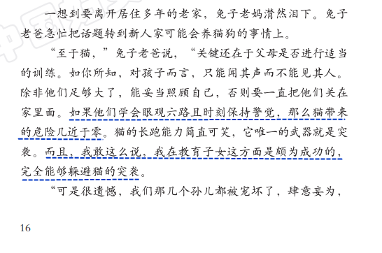 兔子老爸说,“关键在于父母是都惊醒适当的训练。如果他们学会眼观六路且时刻保持警觉,那么猫带来的危险几乎为零。”