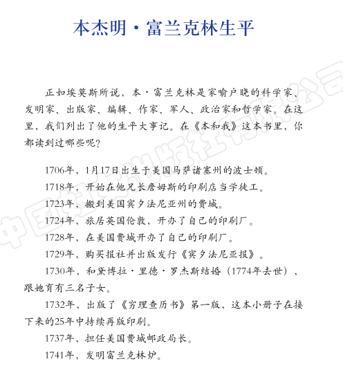 从这个故事里,孩子不止能了解本杰明·弗兰克明本人,还能读到美国历史故事,比看纯粹的人物传记要有趣太多了。