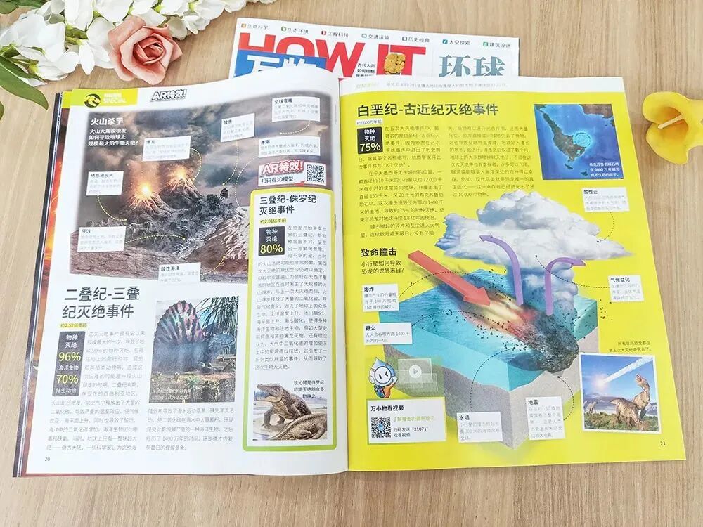 每期杂志都有一个特别报道主题,这一期的是“物种大灭绝”,听着就感觉神秘刺激——杂志用了10页、12个知识点、20多张图片,讲诉了过去5次大灭绝和我们正在经历的第六次大灭绝事件,涉及了生物、地理、环境、太空等知识,可以让孩子比较全面的了解到大灭绝的知识。