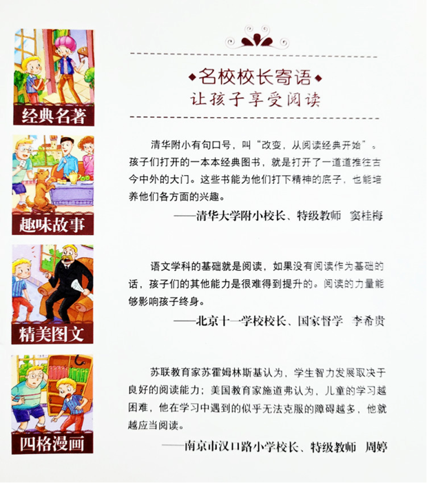 外观设计典雅大气,搭配精美的插画,阅读起来非常轻松,让孩子百看不厌,更爱自主阅读。