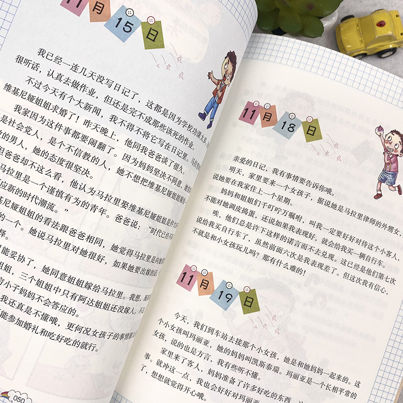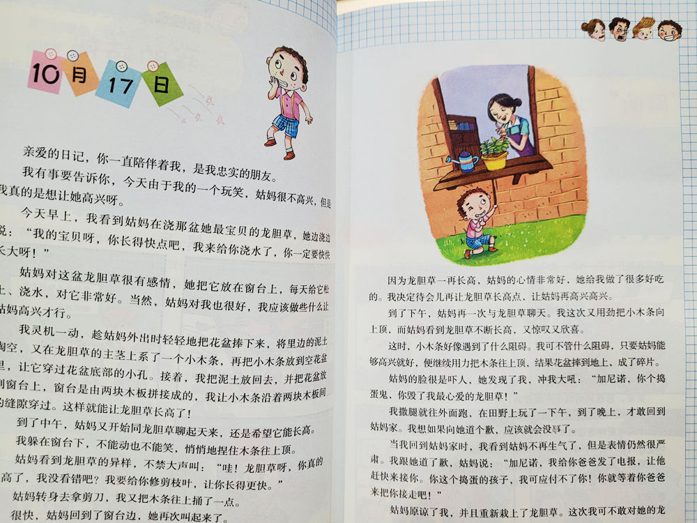 在加尼诺九岁生日这天,他收到了妈妈的礼物——一个精美的日记本,于是,他把自己的想法和经历的事情都记录下来。