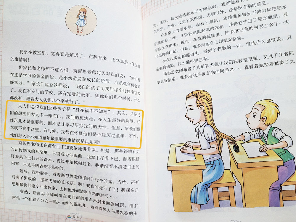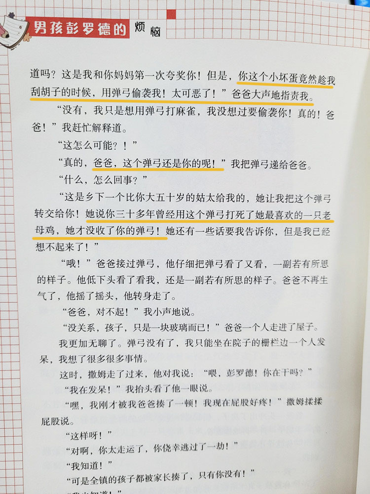 这本书语言朴实有趣,以孩子的眼光心态记录身边所发生的事,能让孩子很有代入感,能产生共鸣,感受小主人公调皮捣蛋的趣事同时又明白一些道理和规则。
