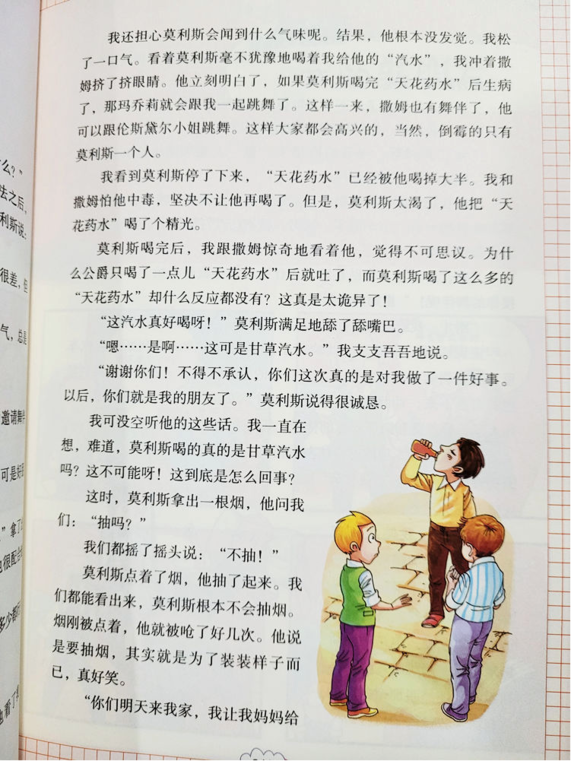 此外情节生动、曲折也很重要,最能吸引孩子的书,是那些让他们拿起就不愿放下,一口气读到底的书。