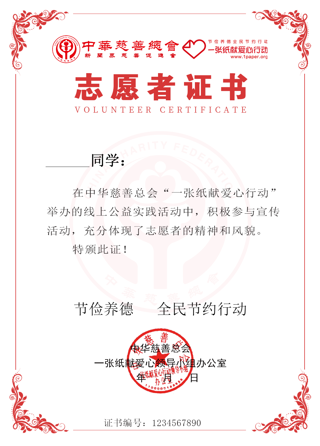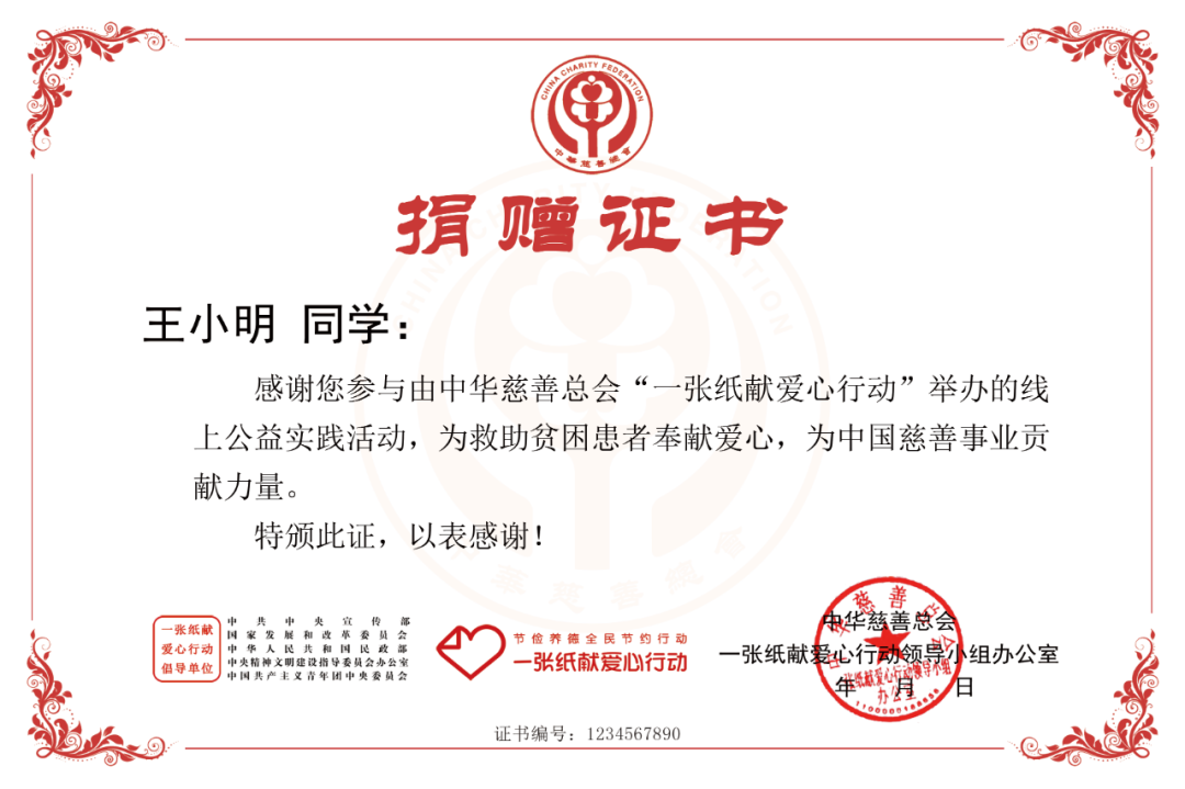 中华慈善总会“一张纸献爱心行动”线上公益实践活动