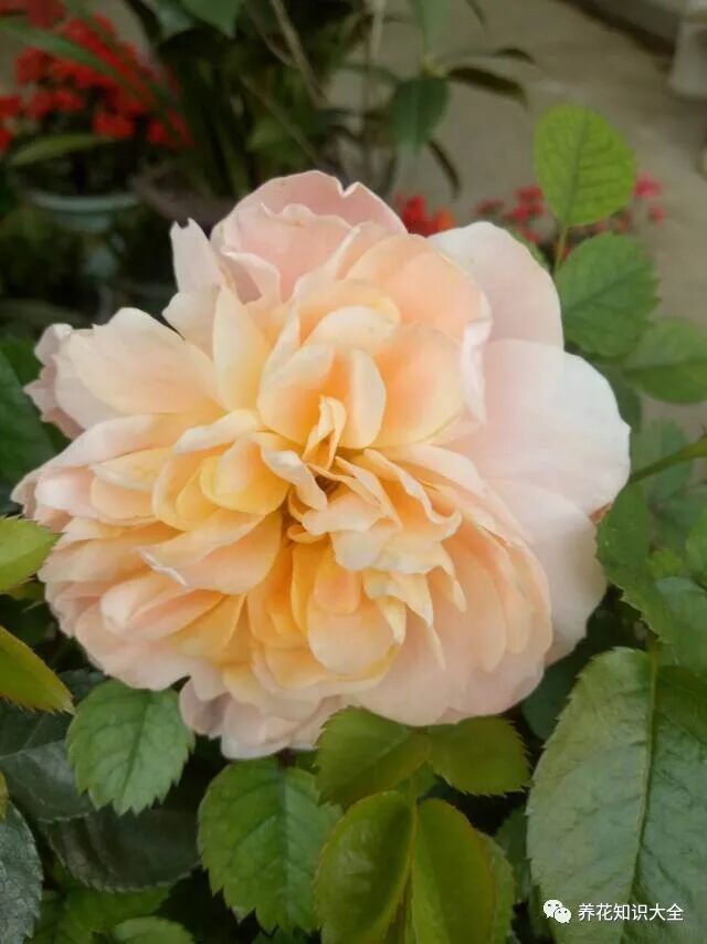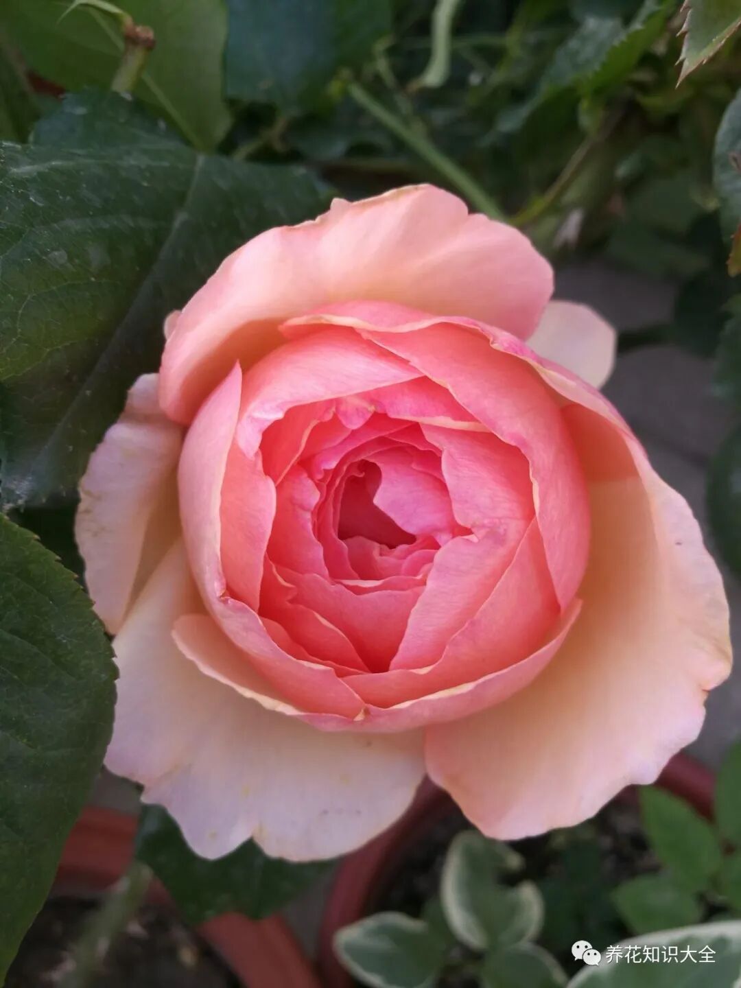 真宙是来自日本的花种,真宙的花瓣很多,能够达到上百瓣。花色是橙色和杏粉色的混合,这点花色上朱丽叶有点像,只不过朱丽叶是渐变的花色。这点花友们要注意区分。