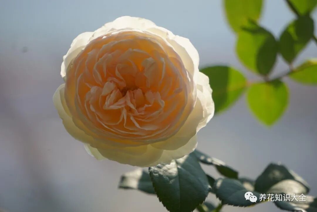 朱丽叶的花瓣是杏橙色的,花瓣的颜色由内到外渐变,颜色从内到外逐渐变淡。朱丽叶的花,花型饱满,很有浪漫气息。