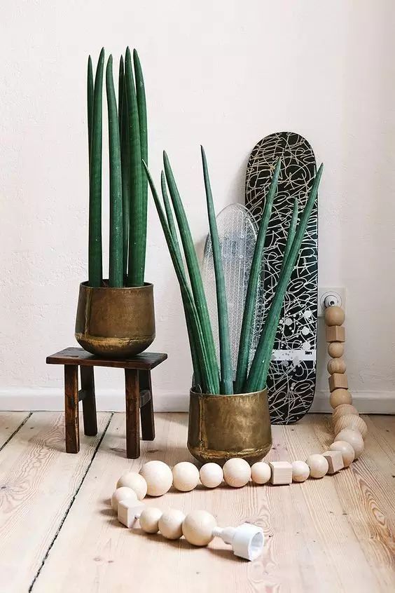 金边虎皮兰最常见了,特征是叶子边缘是一圈金边,你可能会觉得有点富贵俗气。然而,只要你会搭配盆子,瞬间就可以走逼格路线了。