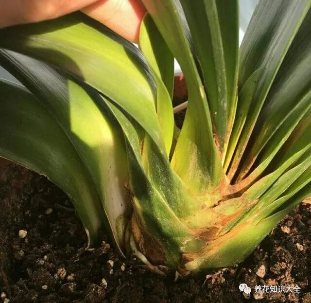夏天也是君子兰烂心的高发季,一不小心,从叶心处腐烂,让人欲哭无泪。君子兰烂心,有可能是人为的,也有可能是病虫害导致的。人为烂心主要是浇水方法不对,叶心处长时间积水或者叶心处进了肥料、肥液等。病虫害烂心需要根据具体情况判断,有可能是病菌导致的,也有可能是虫害啃食引起的。