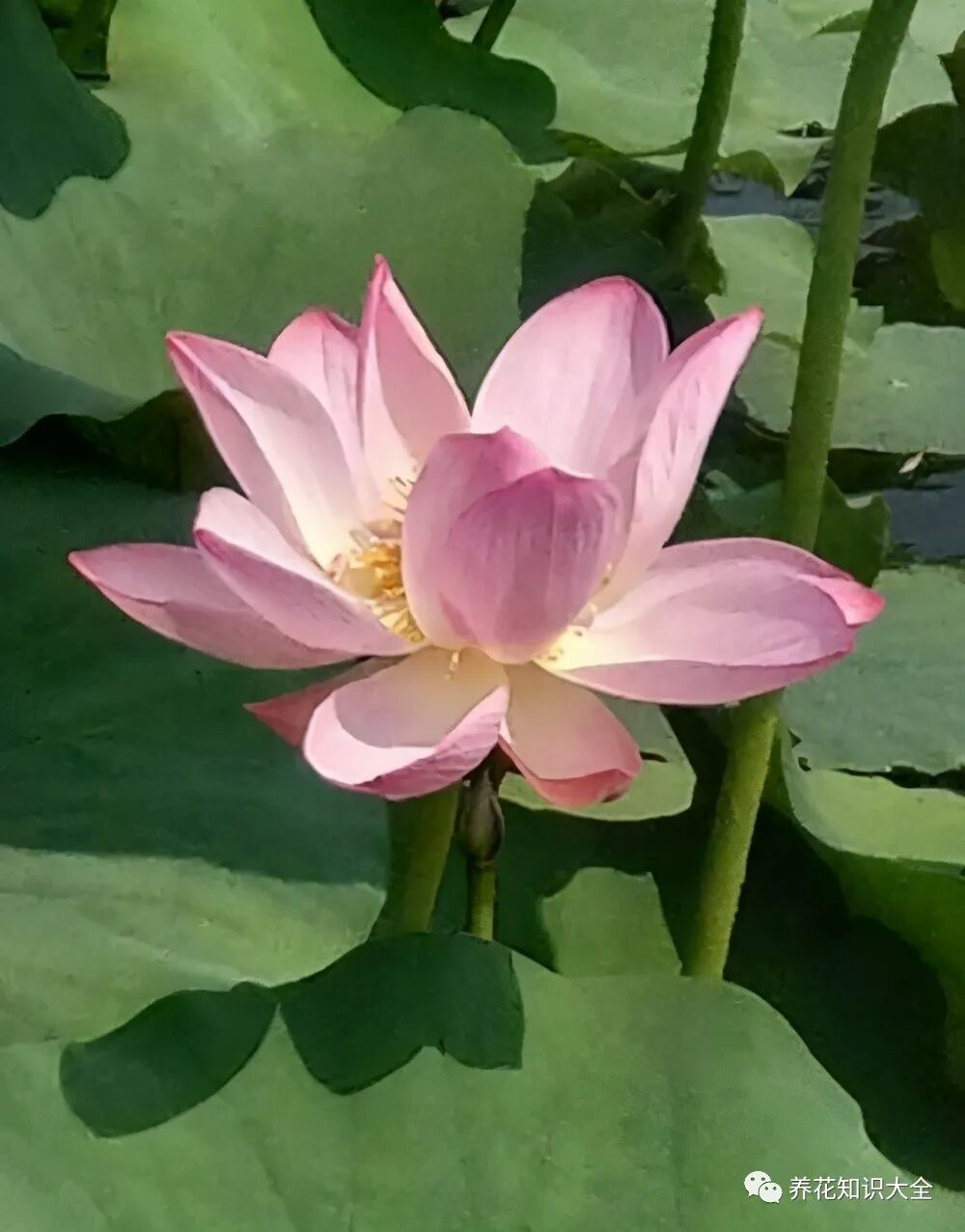 荷花是水生植物,生长在水里,却也能耐光照,即使是夏日的烈阳光也是照收不误。荷花生长对缺光和缺水敏感,不过直接将荷花种在水里,一般是不会有缺水的烦恼的,就是需要找一个全光照的环境,这样荷花才会长得欢。