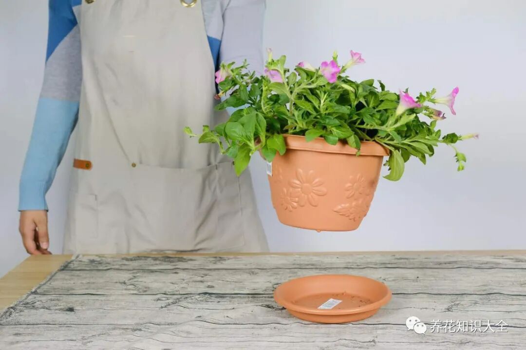 浸盆法。将花盆放在装有水的浅盆里,让花盆里的土自己向上吸取水分。
