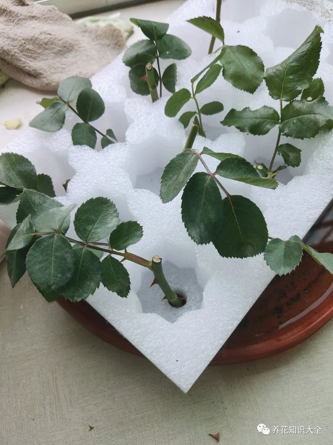 扦插完之后,不用管。将泡沫箱挪到通风透气并且有散光的地方,让枝条自由地生根。差不多在底部的水干了之后根就长起来了。