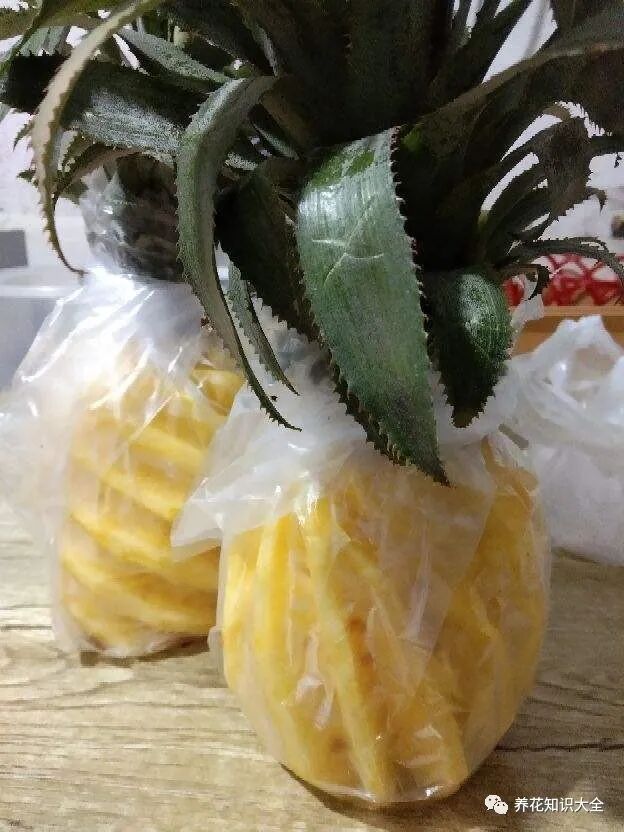 我们平时吃菠萝,切掉的皮和头一般都会扔掉。其实菠萝的头也是可以用来栽种盆栽的。