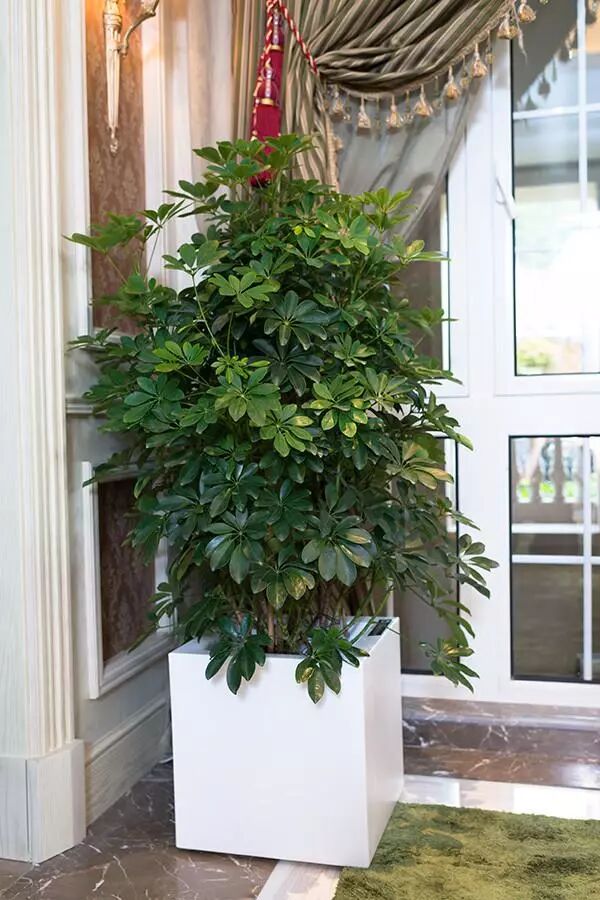即鹅掌柴,盆栽布置客室、书房和卧室,具有浓厚的时代气息。能给吸烟家庭带来新鲜的空气。叶片可以从烟雾弥漫的空气中吸收尼古丁和其他有害物质,并通过光合作用将之转换为无害的植物自有的物质。