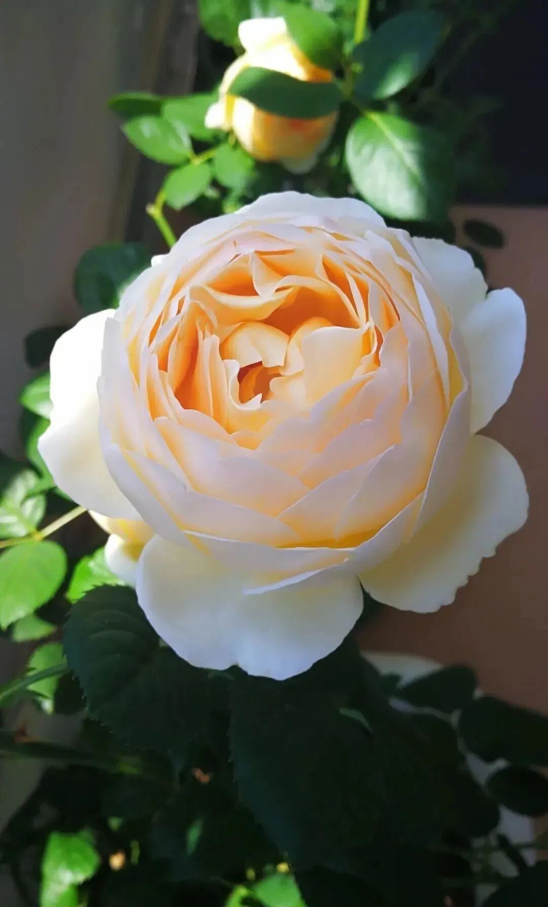 很多人叫它朦胧的朱迪,当然也有人叫它无名的裘德,这2种说的都是它,开花包子型,花朵中间是杏黄色,边缘是浅黄色,开花后,香味是水果香混合着番石榴和白葡萄酒的香气,特别清甜。