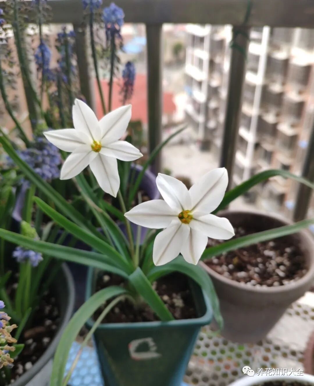花韭其实跟韭菜一样,都是百合科植物,看花韭的叶子就知道了,花韭其实跟韭菜的亲缘关系是很近的。有的花友觉得花韭是风雨兰,其实不是的哦,花韭和风雨兰是截然不同的两种植物,风雨兰是石蒜科的,开花比花韭晚两个月左右,花韭一般是在3月开花,等到了6月多就休眠了;而风雨兰比较皮实,一般从5、6月份开花,花期也是比较长的,能陆陆续续开到秋天。
