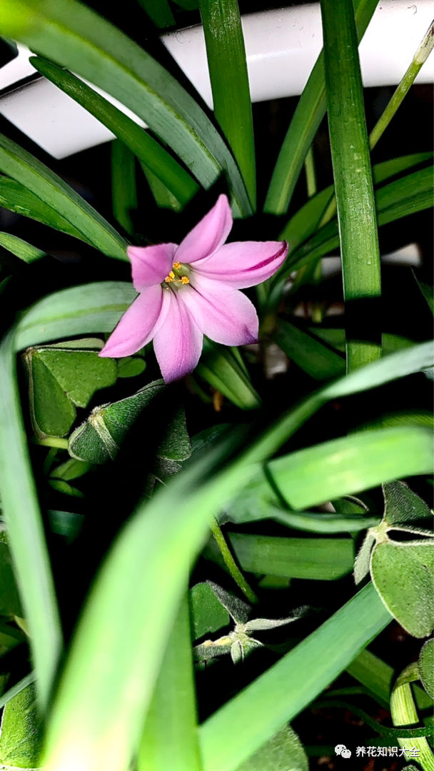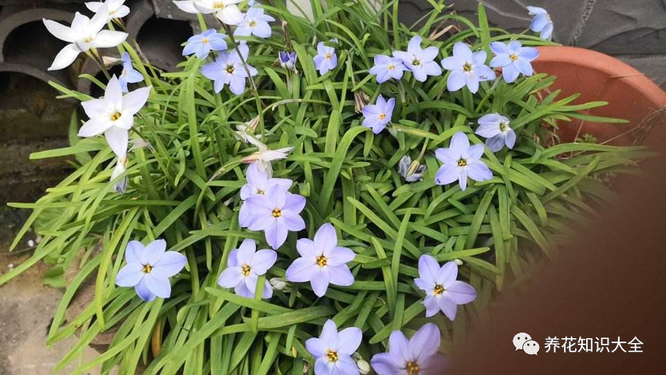 花韭是紫星花属的植物,所以大家可以看到,它的花瓣形状很像五角星,颜色多样,看起来都非常清新好看,但是风雨兰的花朵更像是小喇叭似的,花的颜色也比较单调,经常能够见到的风雨兰颜色就是普粉、橙色等,颜色比较少。花韭既然叫做花韭,还有一个特点,就是揪上一把叶子,满手都是辛辣的味道,怪不得叫它花韭呢!