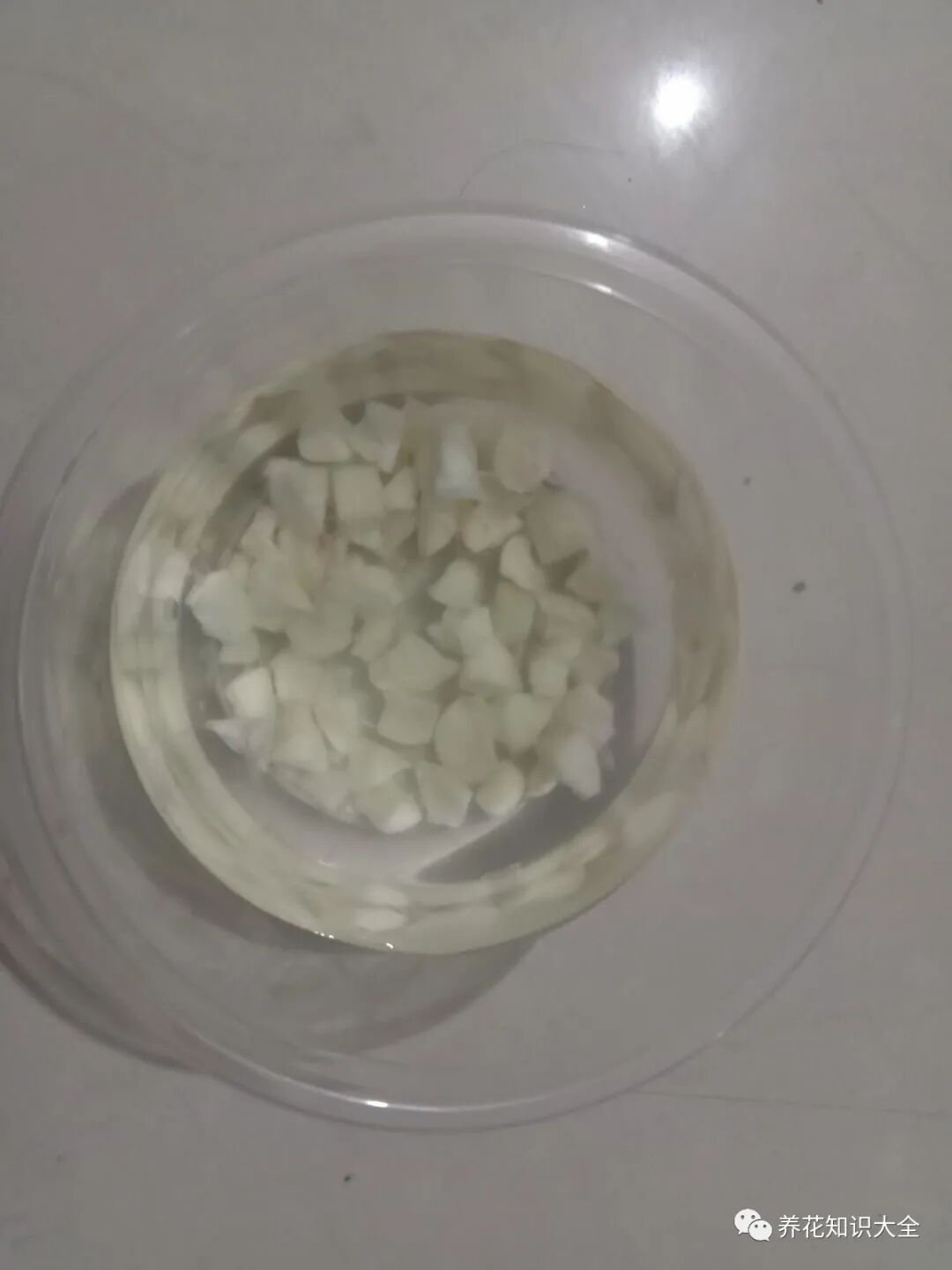 同样的,我们把洋葱剥碎之后,拿去泡水,洋葱里的杀菌物质就会溶解在水里,浸泡一天一夜之后,我们把洋葱末滤掉,可以拿着这些洋葱水去喷洒植物杀菌。