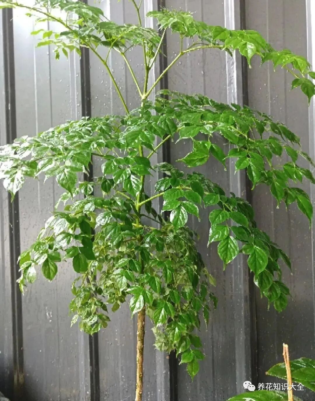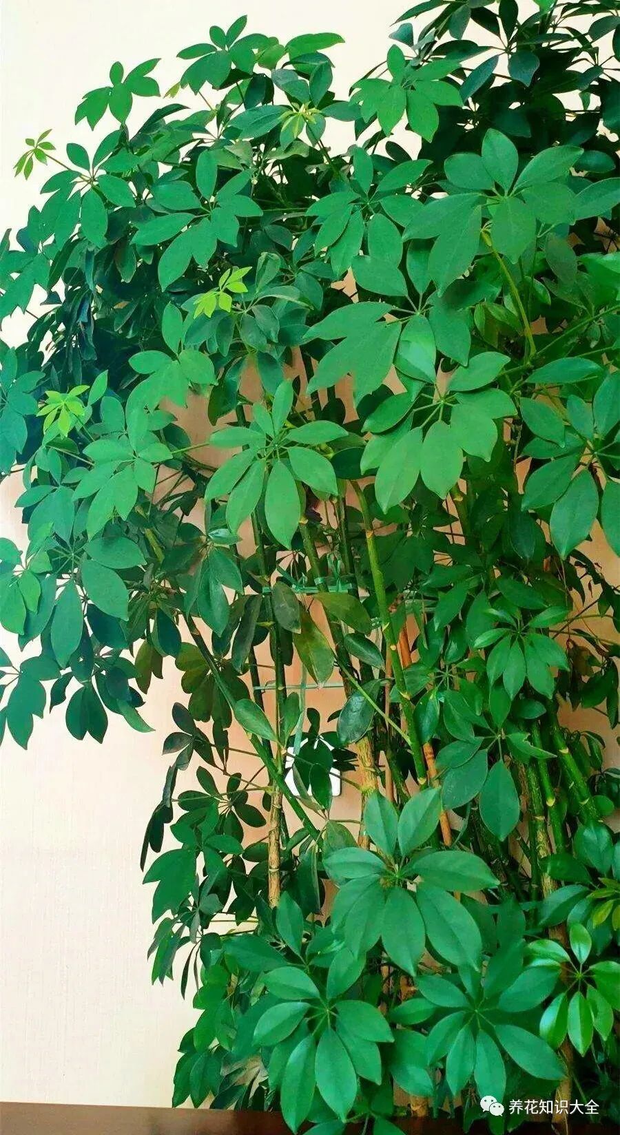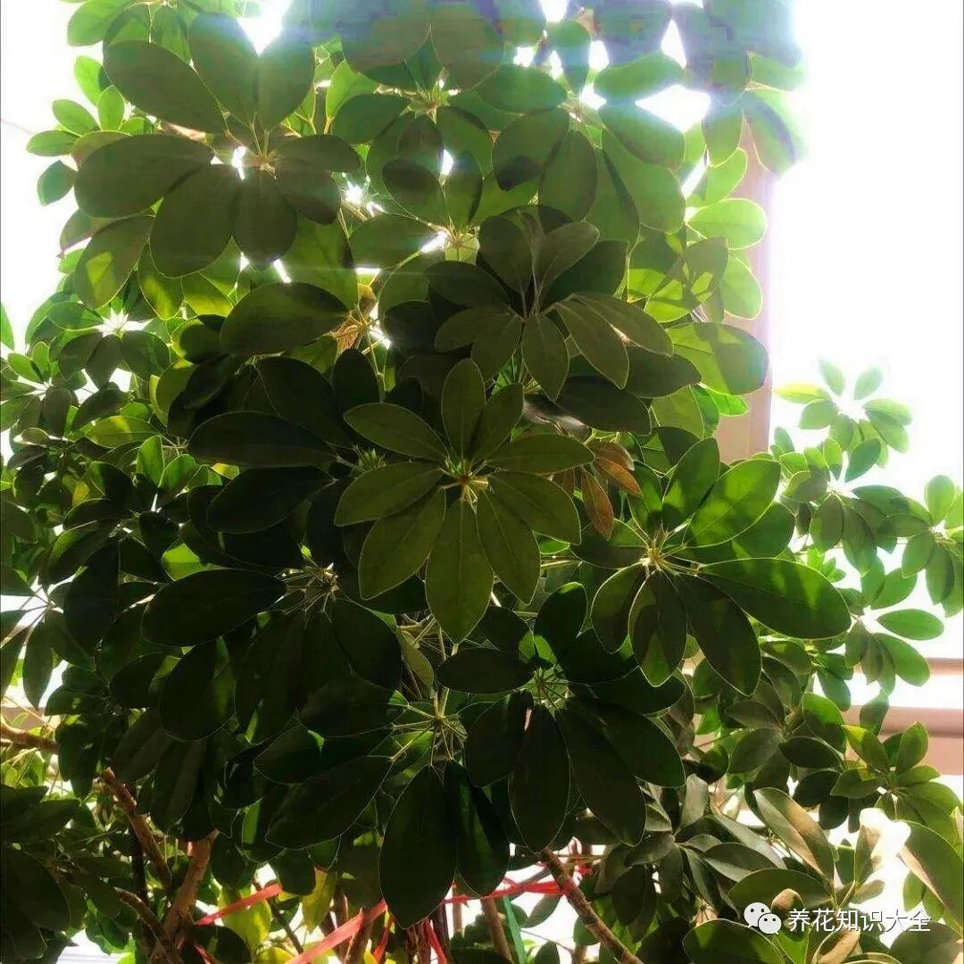 鸭掌木又名鹅掌柴,和大叶伞相比,鸭掌木叶子稍小、哑光质地,分枝更多。鸭掌木属于灌木,容易丛生,家养也很容易爆盆。