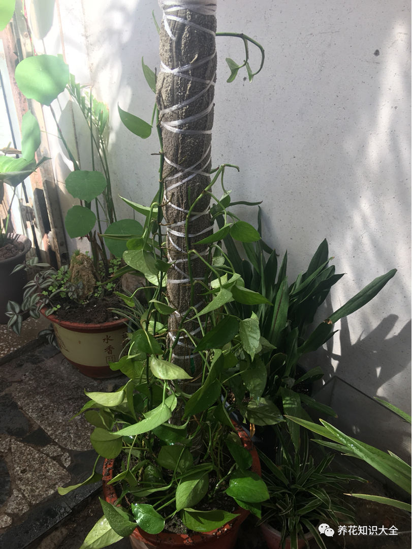 绿萝桩也是一种非常好看的植物,很适合养在家里,其实绿萝桩就是用大叶绿萝做成的,大叶绿萝是能爬藤的,我们自己在家做个桩子,将大叶绿萝的枝条直接缠绕在绿萝桩上面就行。绿萝桩能做多高,全靠绿萝能养得多旺。