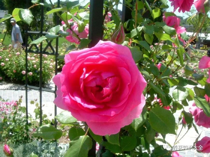大游行的花朵是深粉色的,还有人说是烈粉,花香是淡淡的水果香,气味温和,花色清新,开败之后,及时把残花剪掉,很快就能在残花处长出新芽,极易养爆,是打造花墙的不二选择,养护的时候,多晒,薄肥勤施,花量是不用怀疑,肯定让你满意。大游行的缺点我目前没有发现太多,唯一的一点,就是枝条上的刺有点多,养的时候,要小心一点。