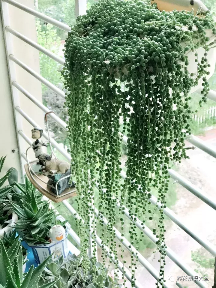 佛珠也是一种多肉植物,因为它的叶片像是一粒粒饱满的小珠子,翠绿又圆润,像一颗颗佛珠一样,挂起来养护非常漂亮。